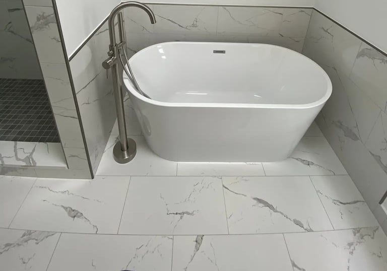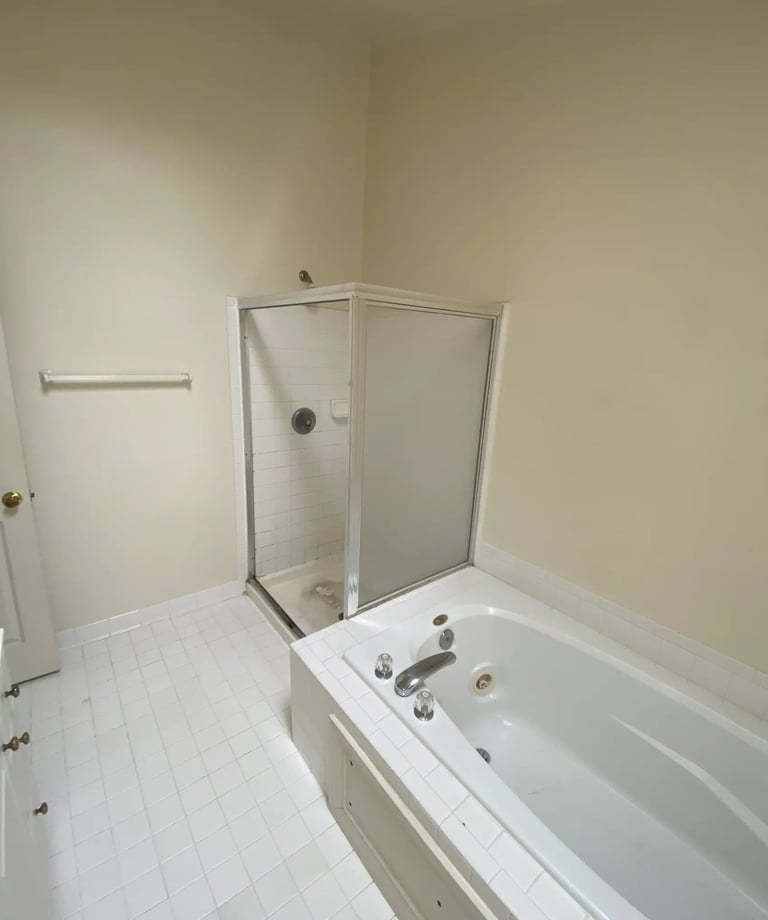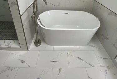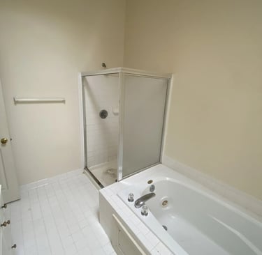 This bathroom renovation replaced the outdated countertop and builder-grade fixtures with a clean, modern vanity surface, an updated sink, and a sleek new faucet. The tub and shower area were fully retiled with fresh, light-toned tile, replacing the old, worn wall tile for a cleaner and brighter appearance. The bathtub was renewed to a crisp white finish, and the entire space was refreshed with updated wall colors and improved lighting. Together, these upgrades create a much cleaner, more modern, and visually open bathroom with greatly improved functionality and appeal.
