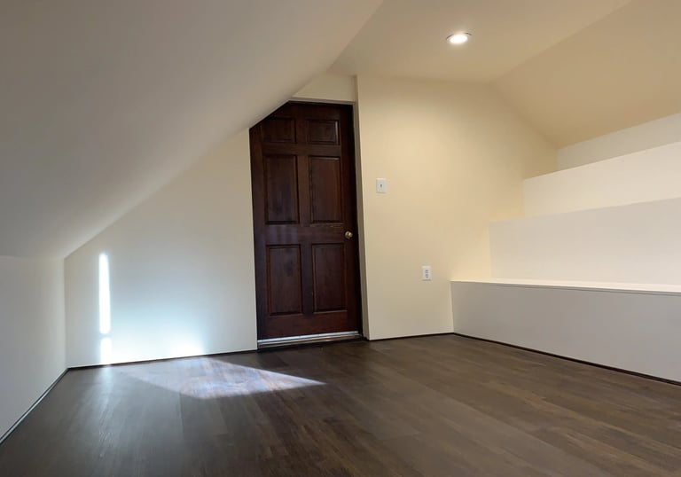 A completely unfinished room transformed into a bright, functional, and fully finished living space.