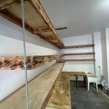 This project features custom hardwood-plywood shelving designed to improve garage organization and maximize usable space. Each shelf was built to fit the homeowner’s storage needs, offering strong, long-lasting support for tools, equipment, and household items.